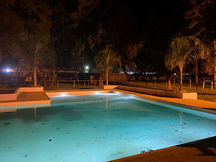 Cancha de fútbol iluminada y con tribunas espaciosas, preparada para entrenamientos, partidos y eventos sociales.